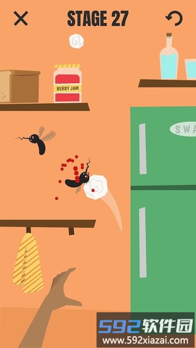 1、碰上特大号蚊子就得持续点击屏幕,直到它的血条彻底清零。