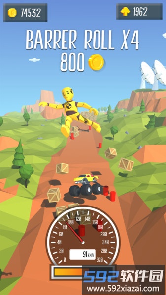 清晰的视觉画面搭配俏皮卡通风格,操作门槛低但充满挑战。每次进入游戏都会遇到随机生成的场景,上百种地图配置带来持续的新鲜体验。在逼真的物理引擎加持下,你将沉浸于充满张力的特技竞速世界。