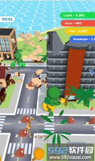 --通过收集场景中的鸡腿增强体型,接着对房屋进行连续破坏,整个过程充满乐趣。