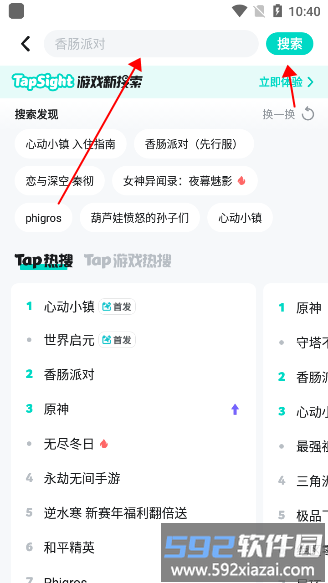 2、进入首页,搜索框输入喜欢的游戏名称,点击搜索