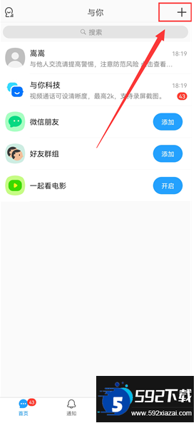2. 进入软件首页,点击右上角的“+”符号;