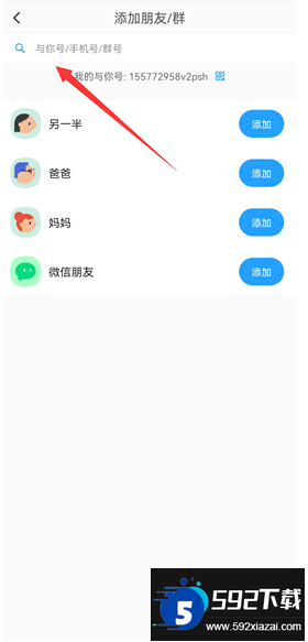 4. 在搜索框中输入对方的与你账号、手机号或群号进行查找,也可以直接扫描二维码添加好友。
