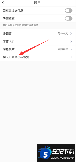 3. 在通用界面中找到【聊天记录备份与恢复】功能,点击进入;