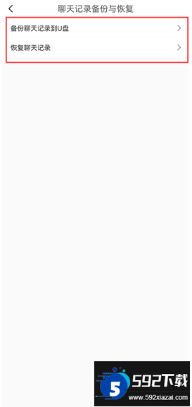 4. 界面会显示【聊天记录到U盘】和【恢复聊天记录】两个选项,直接点击恢复记录即可完成操作。
