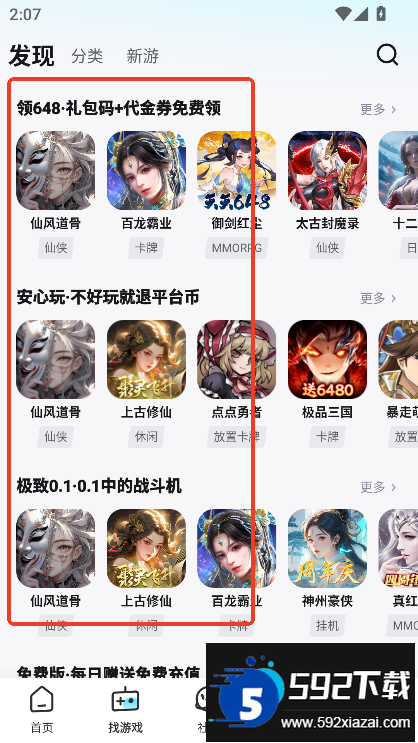 界面简洁:应用界面设计清晰直观,各项功能与游戏入口一目了然;