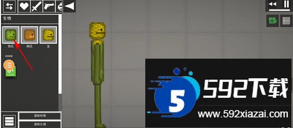 进入游戏后,首先需要创建一个生物角色,点击左上角的爱心图标,从西瓜、南瓜或玉米等选项中挑选一个生物人;