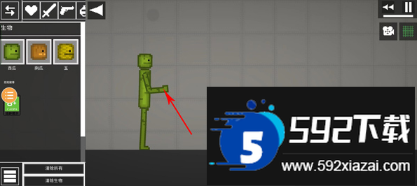接着调整角色胳膊,双击角色胳膊会弹出菜单,包含删除、冻结、静置碰撞、启用等选项,选择冻结后胳膊会固定在空中;
