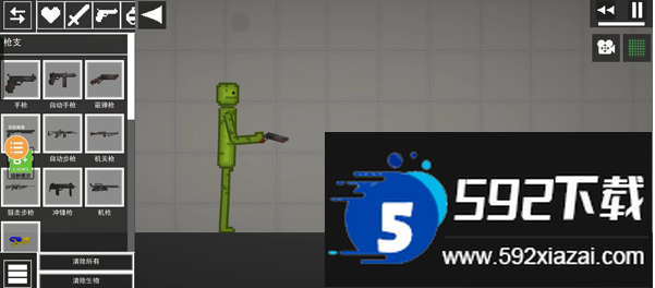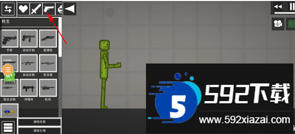 胳膊固定后,点击左上角的枪械图标进入武器选择界面;