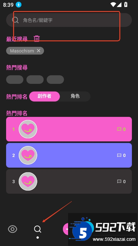 2、进入搜索页面,输入关键词快速定位目标角色;