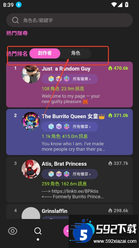 预设角色选择:平台准备了游戏、动漫、超级英雄和名人等类型的现成角色,方便快速开始聊天;