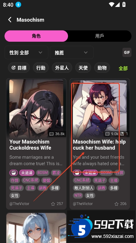 1、打开应用首页,可按照分类筛选感兴趣的角色;