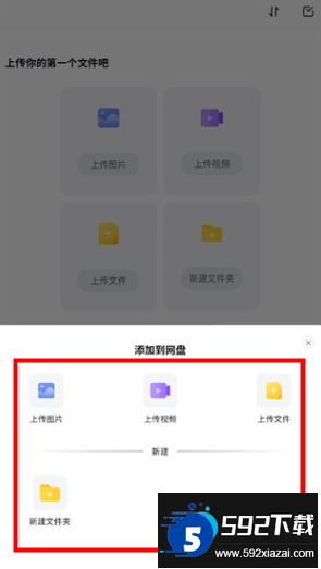 点击界面右下角的加号菜单,选取需要上传的文件。