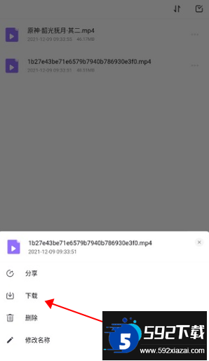 上传结束后,在软件主页可查看文件,通过右侧菜单按钮进行下载操作。