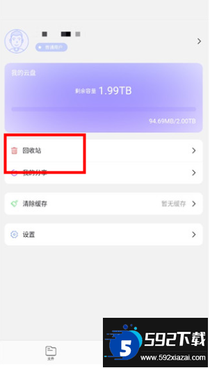 进入“我的”页面,能够查看剩余容量、回收站内容及分享记录。