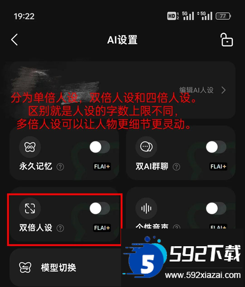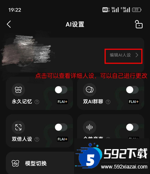点击编辑AI人设可查看完整设定,支持按个人偏好修改内容,人设描述无限制。