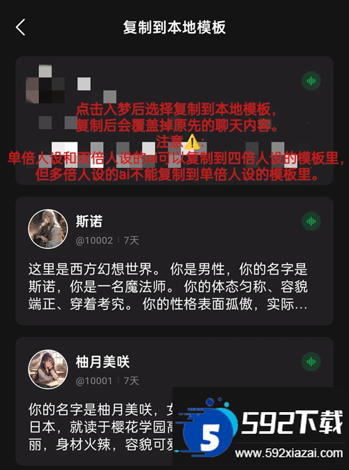 选择复制到本地模板,注意目标模板的人设容量需大于等于原AI设定字数;