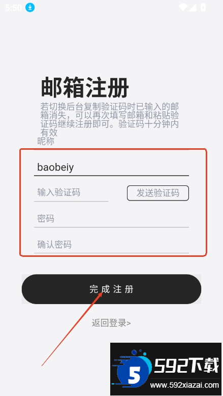 2. 点击下方注册账户,输入邮箱并完成验证,点击完成注册即可成功创建账号。