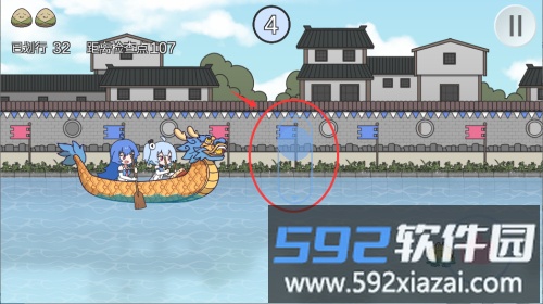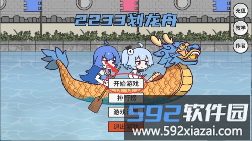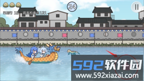 1、开局使用2233萌系角色出战,轻触屏幕控制龙舟方向,灵活闪避河中毒鱼,稍有不慎就会影响航行速度。
