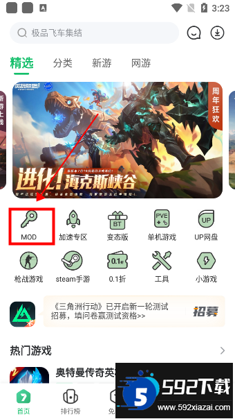 1、打开软件后,首先进入mod专区;