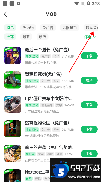 2、在标签页中找到辅助菜单分类,选择喜欢的游戏点击下载;