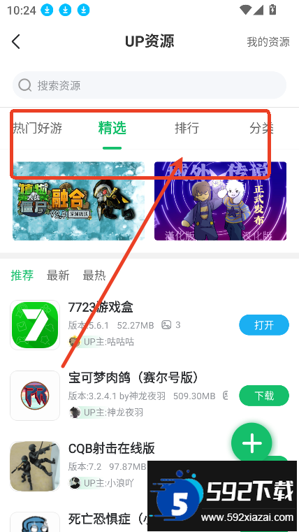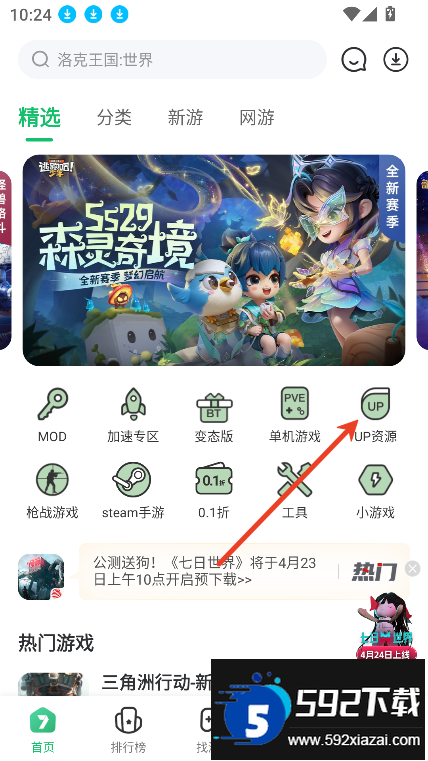 打开7723游戏盒app首页,直接进入up资源专区;