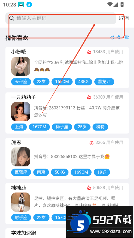 4、在顶部搜索框输入关键词,能够快速找到感兴趣的娱乐内容或博主,检索结果直接呈现;