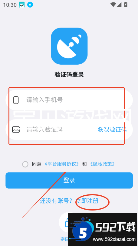 2、输入账号密码完成登录,若未注册可点击下方注册按钮进入注册流程;