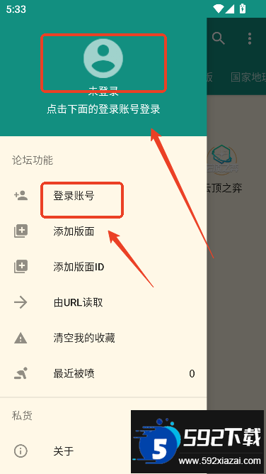 2. 在弹出的菜单中选择登录账号,或点击未登录入口;