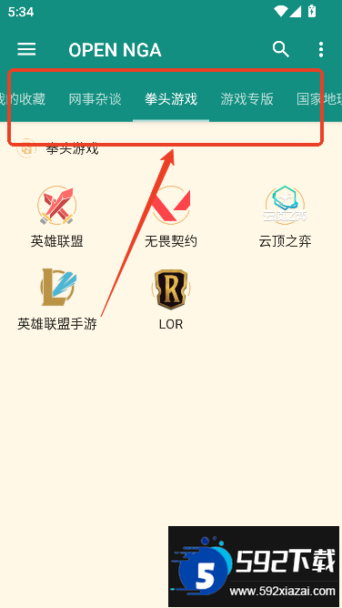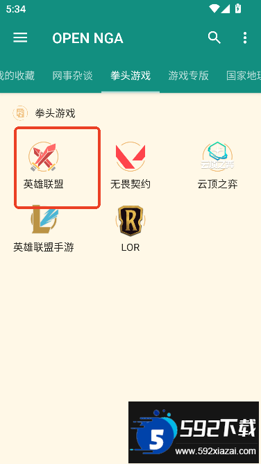 1. 打开软件后,选择想要浏览的栏目,比如进入拳头游戏下的英雄联盟分区;