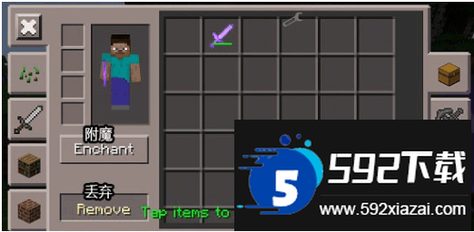 在物品管理界面中,你可以浏览背包内的所有物品,这些物品都以图标形式呈现;虽然界面没有显示具体名称,但支持直接搜索功能;点击附魔按钮即可为任意物品添加附魔效果,不仅是武器和工具,就连草方块也能获得附魔属性。