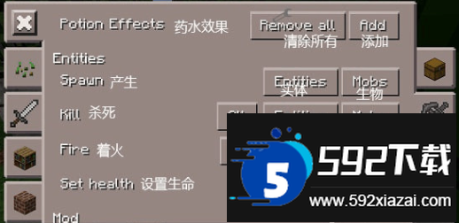清除栏可以选择消灭特定生物或实体,也能一键清除地图上所有掉落物。
