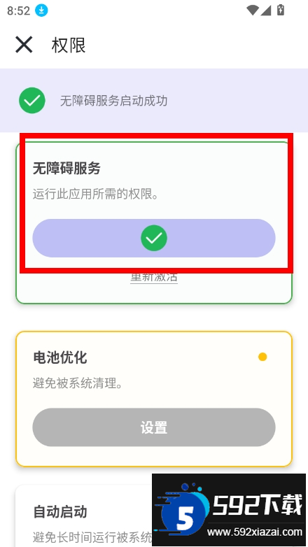当首页显示无障碍服务已成功开启,即表示激活完成,此时可正常使用全部功能。