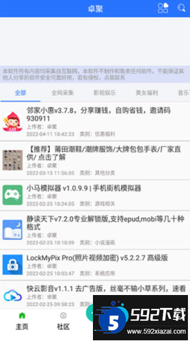 卓聚社区官方最新版是一个应用分享社区平台,它聚合了全网热门资源,包括电子书、音乐、视频和学习资料等,用户可以轻松搜索并下载所需内容。该应用支持多种搜索模式,如本地模式、全网模式和蓝奏模式,能够满足不同用户的资源查找需求。