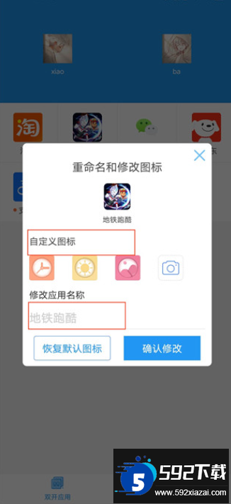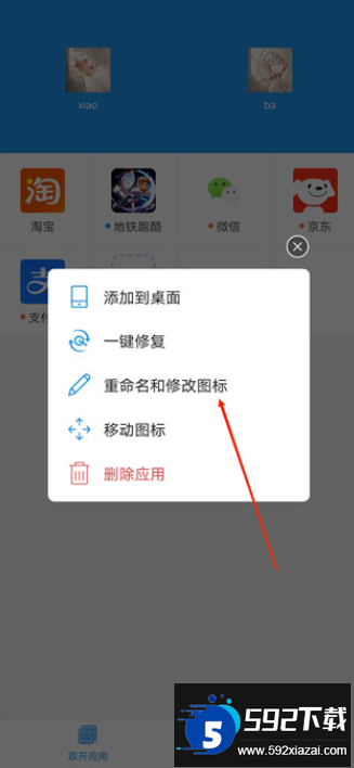 长按应用图标会弹出功能菜单,能够修复游戏异常数据,也可以重命名或修改图标。