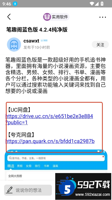 4、进入帖子后获取网盘下载链接,可选择直接下载或缓存至本地网盘。