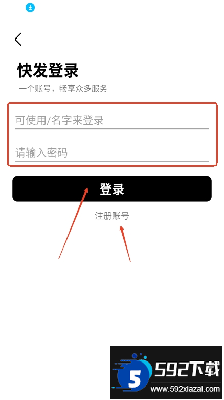 2、输入账号密码完成登录,或点击下方注册按钮;