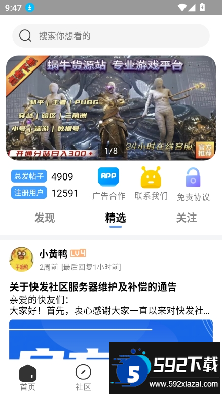 快发社区2<a href='https://m.592xiazai.com/tags/0.html' target='_blank' class='keylink'>025最新版是一款面向安卓用户的资源分享平台,内容覆盖社交、资源获取、优惠活动与设备玩机等多个领域;它支持精准搜索MOD游戏、免费动漫及电视软件等资源,并具备关键词联想功能,输入部分文字即可快速匹配相关内容,搜索结果按热度与时间排序,方便用户迅速找到所需。