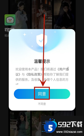下载安装后打开可图AI应用,点击同意相关隐私政策;
