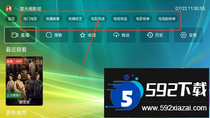 1、打开楚天阁影视app,在首页浏览并筛选你感兴趣的影视内容;