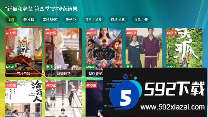 或者使用搜索框,输入关键词直接查找想看的影片;