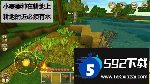 4. 解决温饱。食物来源有多种途径:破坏树叶有机会获得苹果;击败鸡、牛等动物可获得生肉,需用熔炉烤熟;种植小麦并合成面包。种植需先用木锄或石锄将草地锄为耕地,最好靠近水源;清除杂草时可能获得小麦种子。