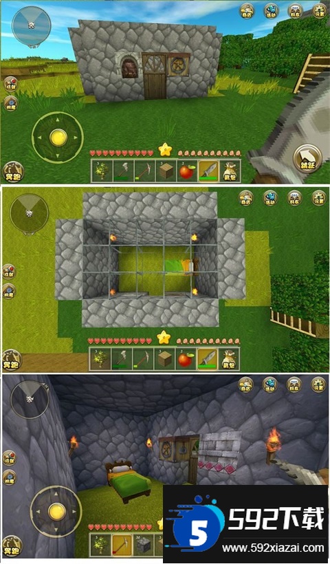 6. 建造家园。初次建造建议使用石头,易于获取且坚固。房屋样式可自由设计,但需完整封闭并安装门以便出入。