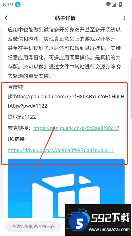 3、打开具体帖子,获取网盘下载链接,选择任意链接进入。
