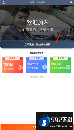 1、首先打开滴滴车主司机端应用,点击立即注册开始流程;
