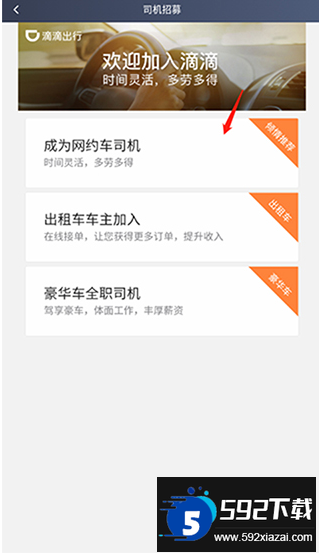 平台提供多种加盟选择,如网约车司机、出租车司机及豪华车全职司机等,用户可按自身条件进行选择;