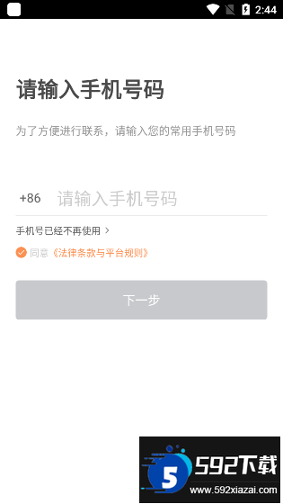 2、随后输入个人手机号码,并点击下一步;