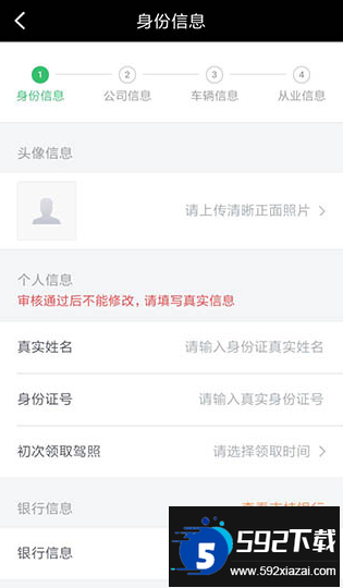 6、最后完整填写身份信息、公司信息、车辆信息及从业信息,提交后等待平台审核,审核通过即可正式成为滴滴司机。