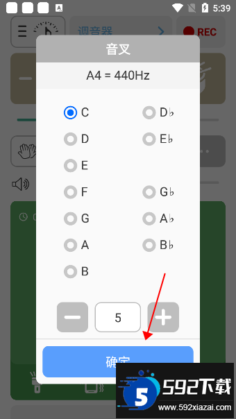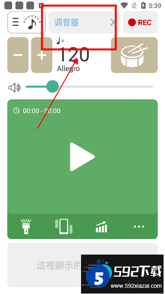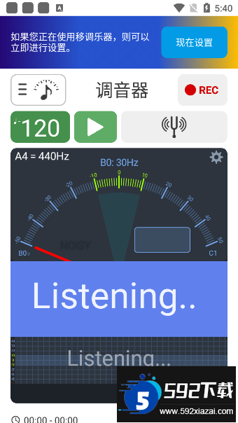 1、启动软件后默认显示节拍器界面,点击屏幕上方的“调音器”标签即可切换到调音功能。