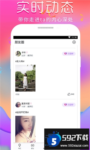 2. 实时动态让社交真实:发布精彩瞬间,快速开启缘分;各种类型女生都在附近;