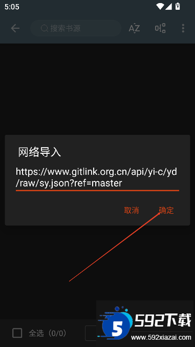 4、也可使用网络导入,输入书源网址或选择推荐的书源网站进行添加。